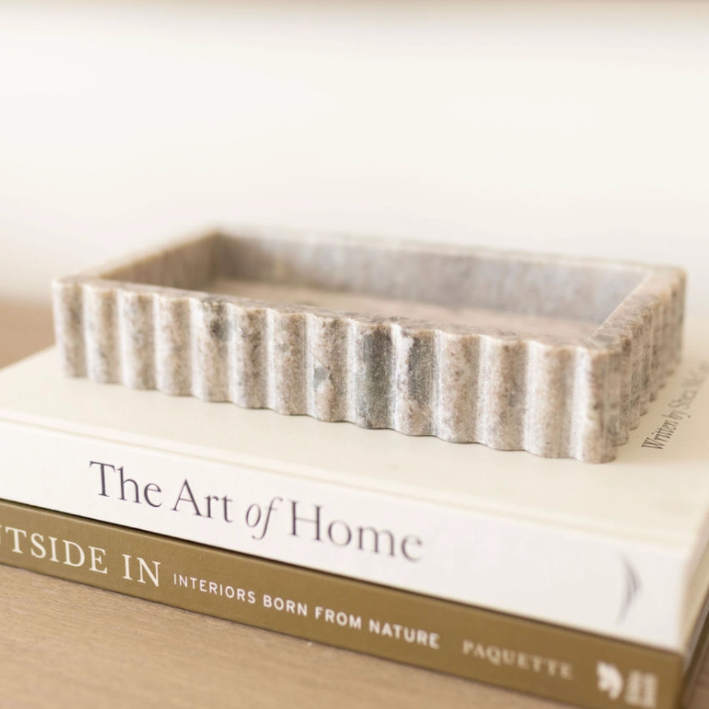 Scalloped Marble Fluted Bridge Tray Beige Gray